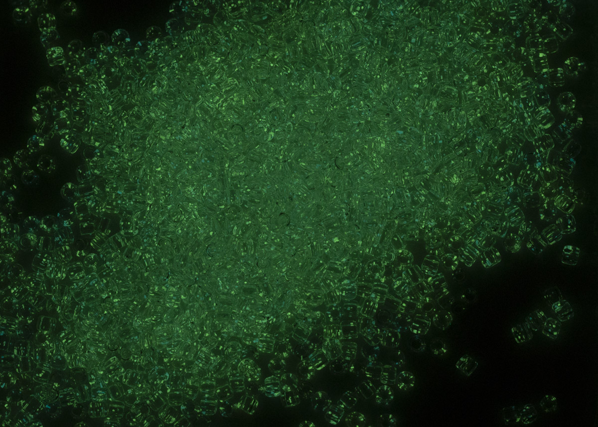 Бисер Япония круглый 11/0 10г 2721 желтый/ярко-зеленый, светящийся в темноте