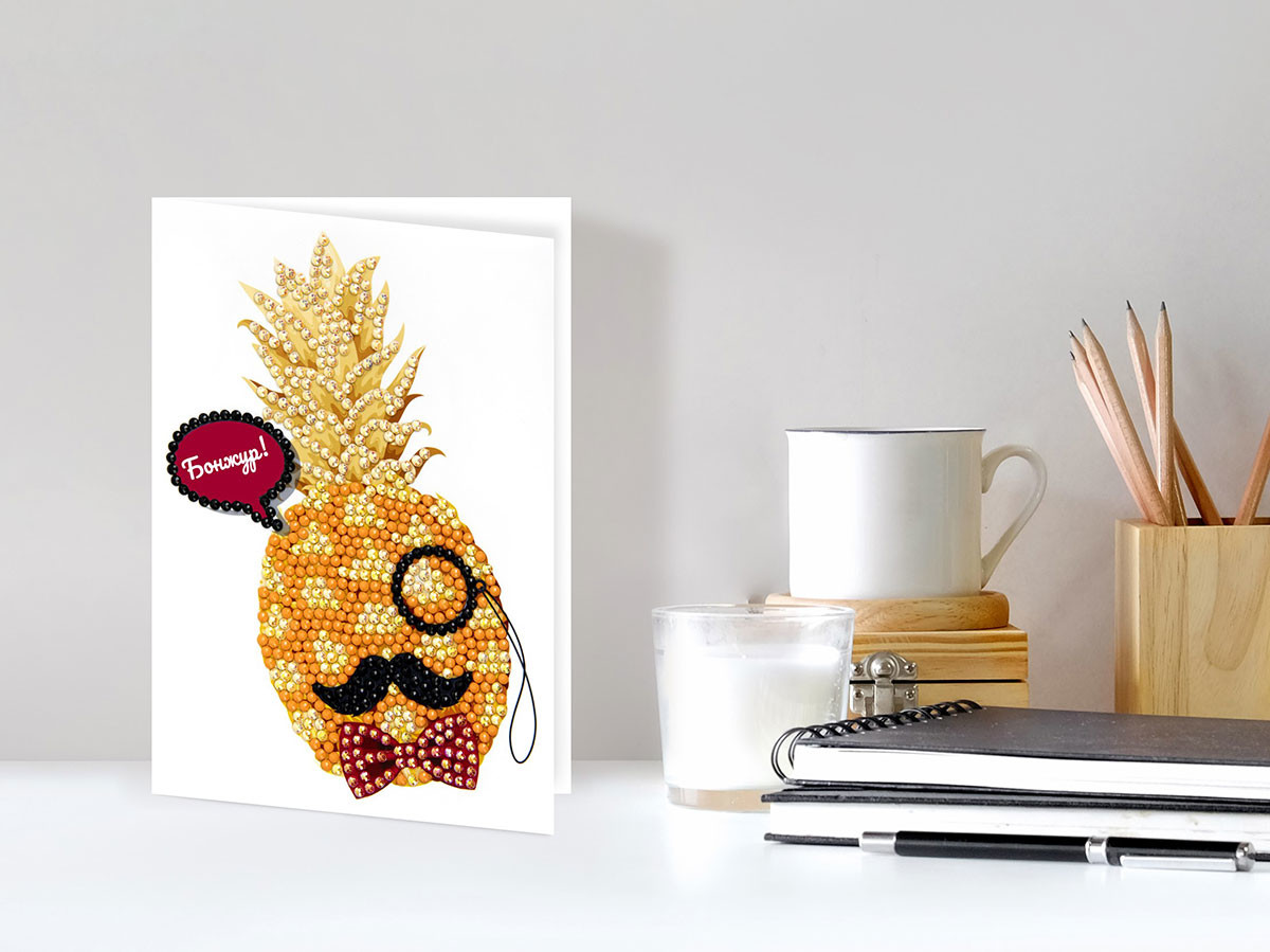 Кристальная ( алмазная) мозаика " ФРЕЯ" ALVO- 607 открытка " Ананас, бонжур!" 10. 5 х 14. 8 см