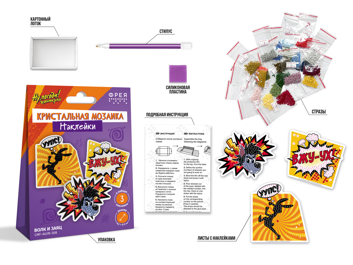 Добро пожаловать в мир волшебства и ностальгии с коллекцией наборов в технике " Кристальная мозаика", созданных по анимационным шедеврам студии " Союзмультфильм". Миллионы людей выросли на захватывающих приключениях любимых героев. Эти персонажи стали частью вашего детства, а теперь они могут украсить вашу повседневную жизнь. Набор по изготовлению наклеек в технике " Кристальная/ алмазная мозаика". Выполнение работы не требует специальных навыков, выкладывать наклейки очень легко и быстро. Круглые стразы наклеиваются поверх изображения со схемой на уже нанесенный клеевой слой. Увлекательный процесс создания изделий поможет развить мелкую моторику и повысить концентрацию внимания. Готовыми наклейками с яркими стразами можно украсить любую ровную поверхность, например блокнот, тетрадь, телефон и многое другое. В набор ТМ ФРЕЯ " Кристальная мозаика" входит: - 3 клеевых основы с клеевым слоем и защитной плёнкой,- стилус и восковая подушечка,- круглые стразы: 5 цветов, запас более 30%,,- картонный лоток, - инструкция. Тип выкладки: частичнаяУровень сложности: 1 из 3Размер готового изделия: 8, 5 х 8, 5 смРазмер упаковки: 10. 5х2. 5х14. 5 см. Набор сертифицирован для детского творчества. Сообщить о неточности в описании
